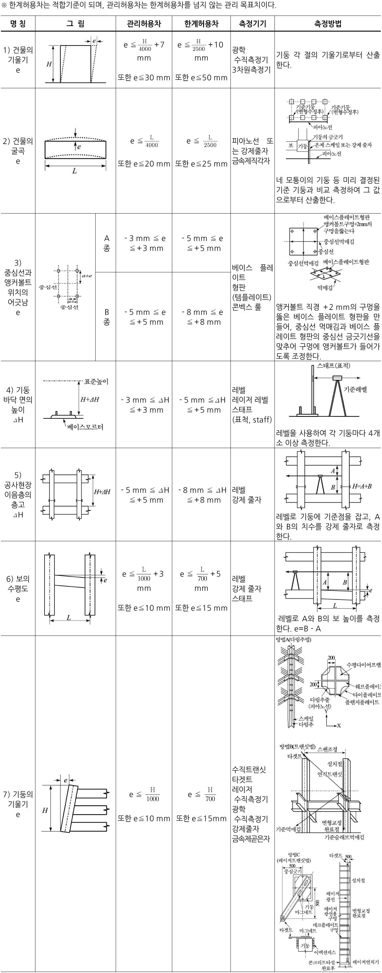 표 3.3-5. 공사현장의 정밀도