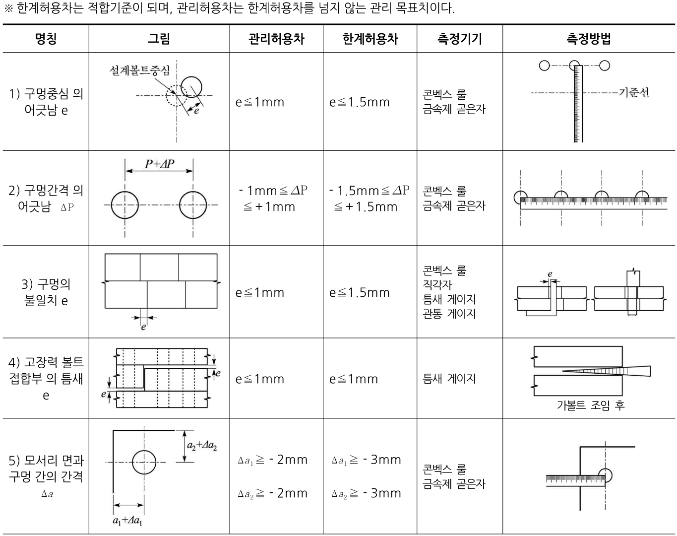 표 3.3-2. 고장력볼트 관련 정밀도