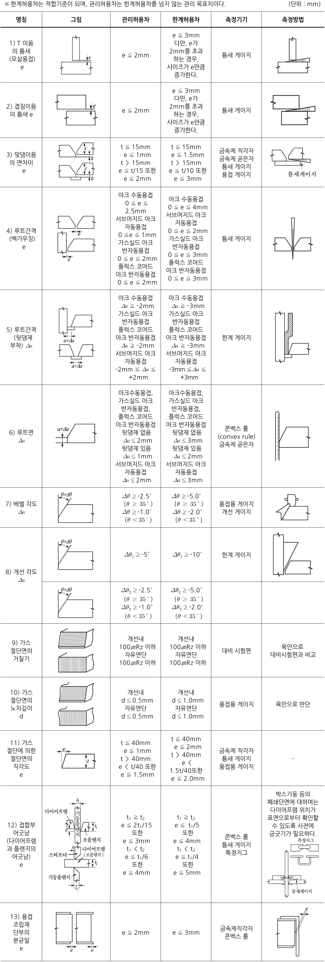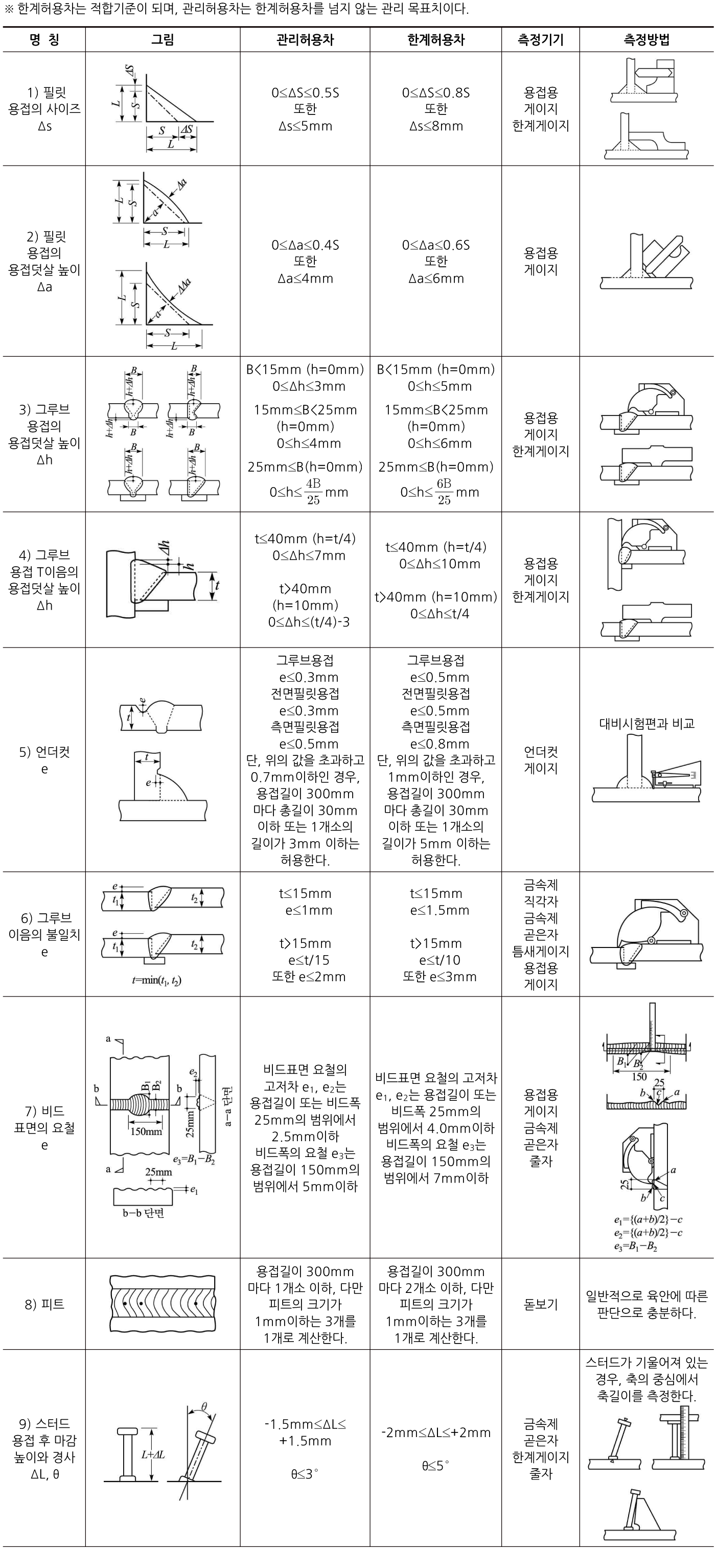 표 3.3-3. 용접 관련 정밀도