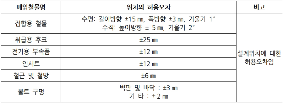 (2) 접합용 철물 및 접합용 철근의 설치 위치와 상단까지의 높이 허용오차는 설계도서에 따른다.
