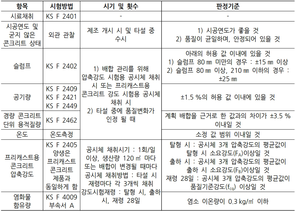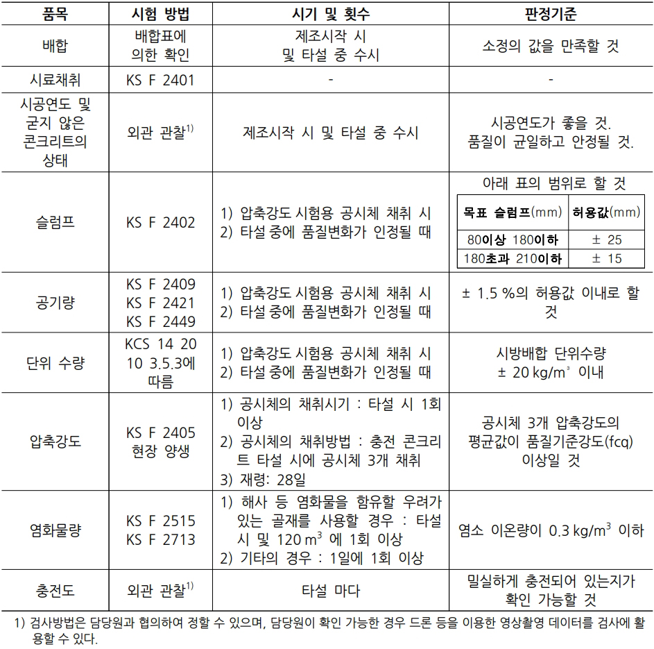 표 3.6-8 충전 콘크리트의 시험 및 검사
