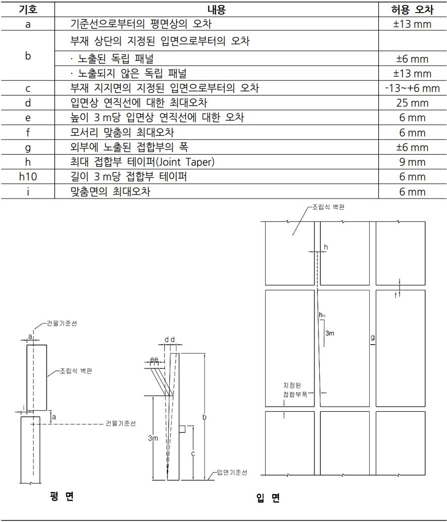 표 3.6-3 벽판 부재의 일반적인 조립 허용오차