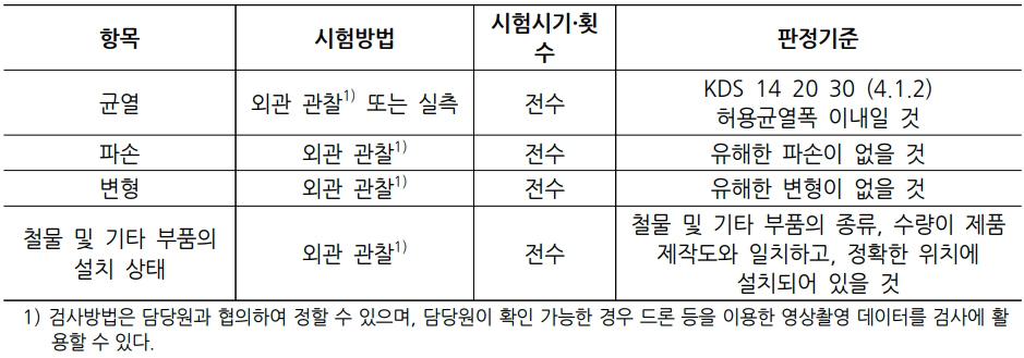 (2) 용접접합의 시험 및 검사는 표 3.6-7에 따른다.