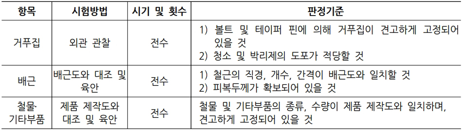 표 3.6-1 프리캐스트 콘크리트 제품의 현장 반입 시 검사