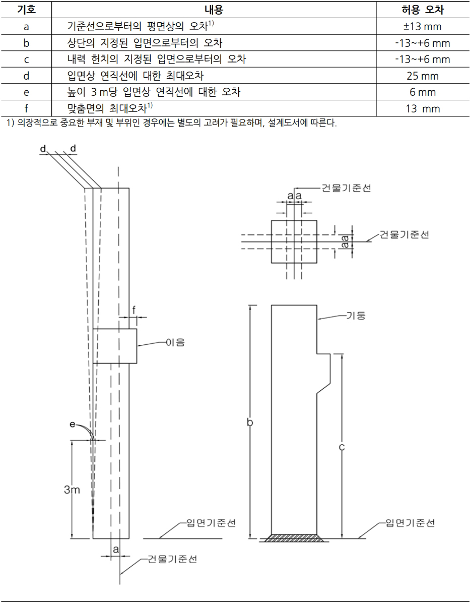 표 3.6-6 기둥 부재의 일반적인 조립 허용오차