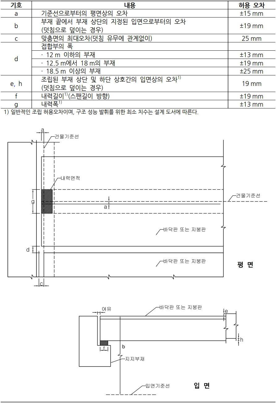 표 3.6-4 바닥판 부재의 일반적인 조립 허용오차