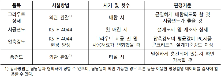 (5) 줄눈부 등의 그라우트 시험 및 검사는 3.6.6에 따른다.