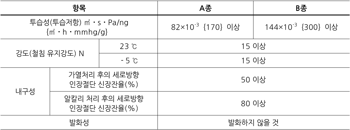 방습자재의 품질기준은 표 2.6-1에 적합한 것이어야 한다.