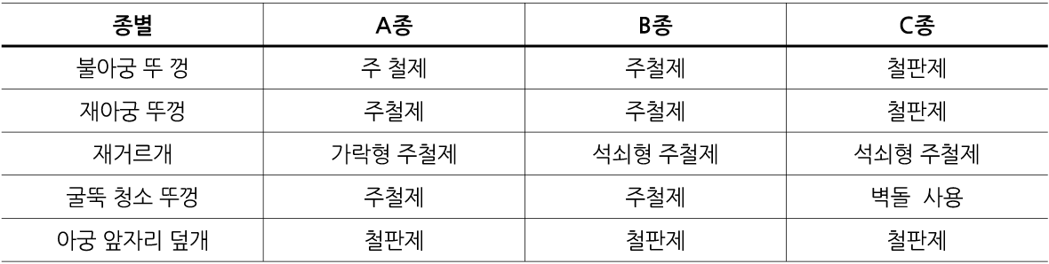 3.1-1 고래켜기의 사용재료 종별