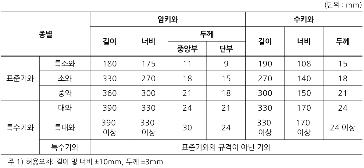 (1) 기와는 균열, 모래구멍, 비틀림, 울퉁불퉁함이 없고 소성온도를 1,000~1,100℃ 이상으로 하여 구운 것을 사용한다.