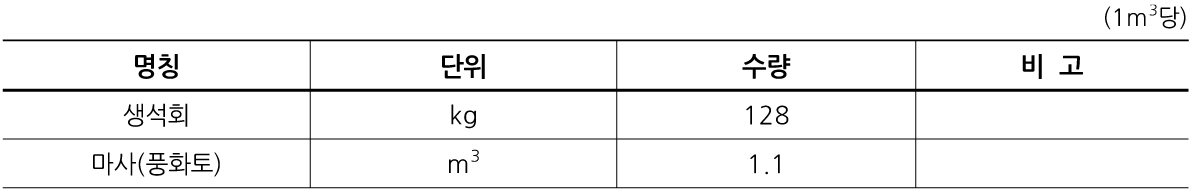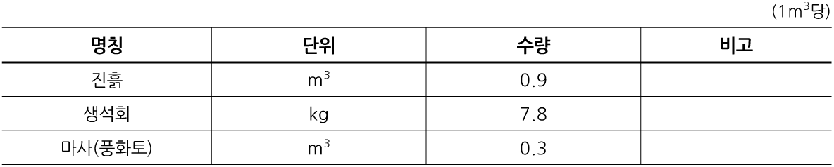 (1) 강회다짐은 생석회, 마사를 다음 표 2.7-1의 배합비율에 따라 물을 혼합하여 사용한다.